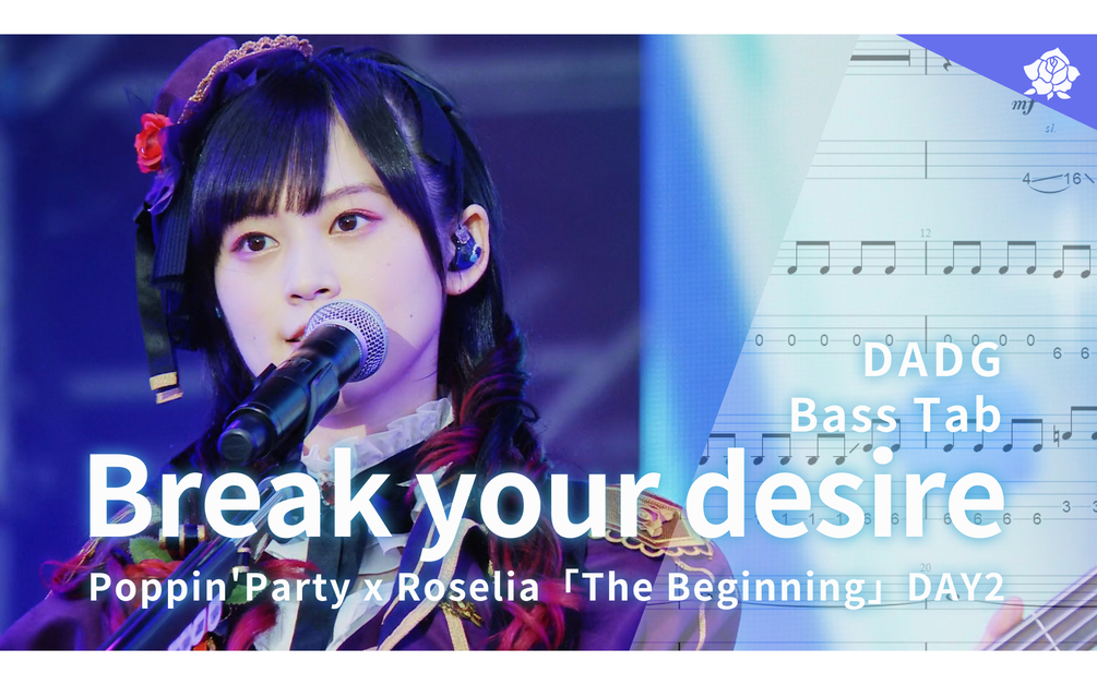There are the Sheet Music PDF and GTP file of 【BassTab 貝斯譜】Break your desire / 9th Live Day2 / Roselia / BanG Dream!